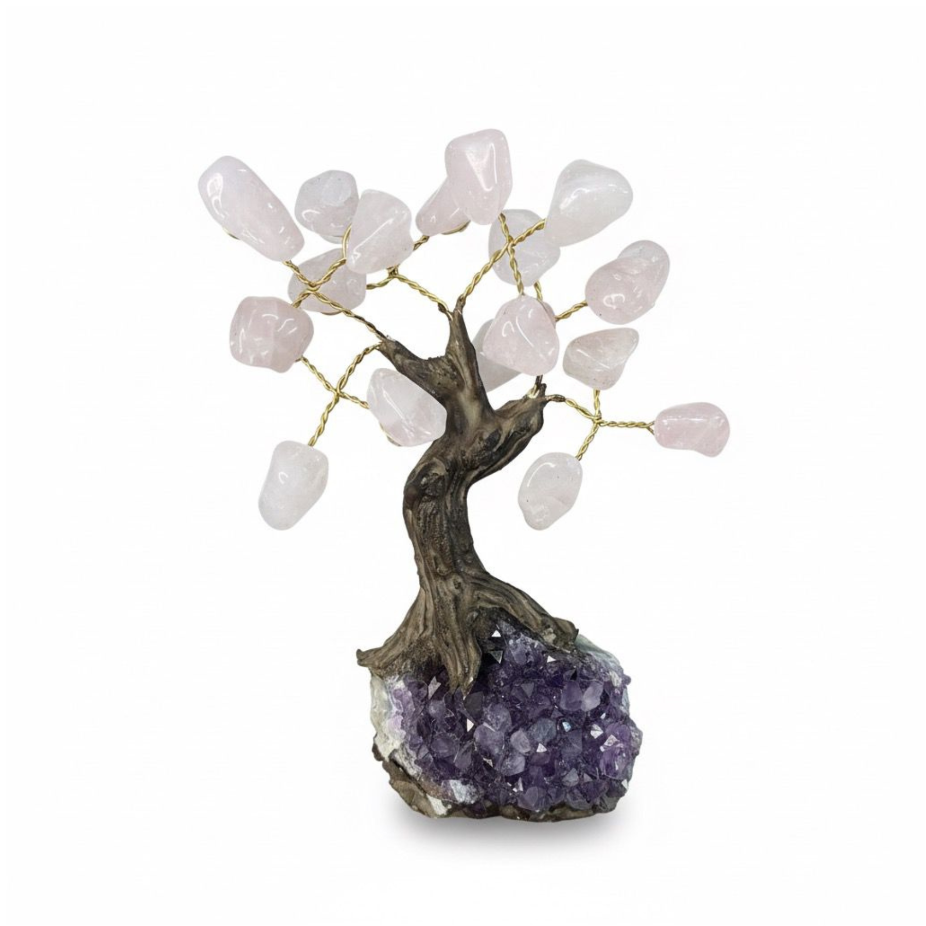 Árvore Pedra Quartzo Rosa 6 Galhos 10 cm