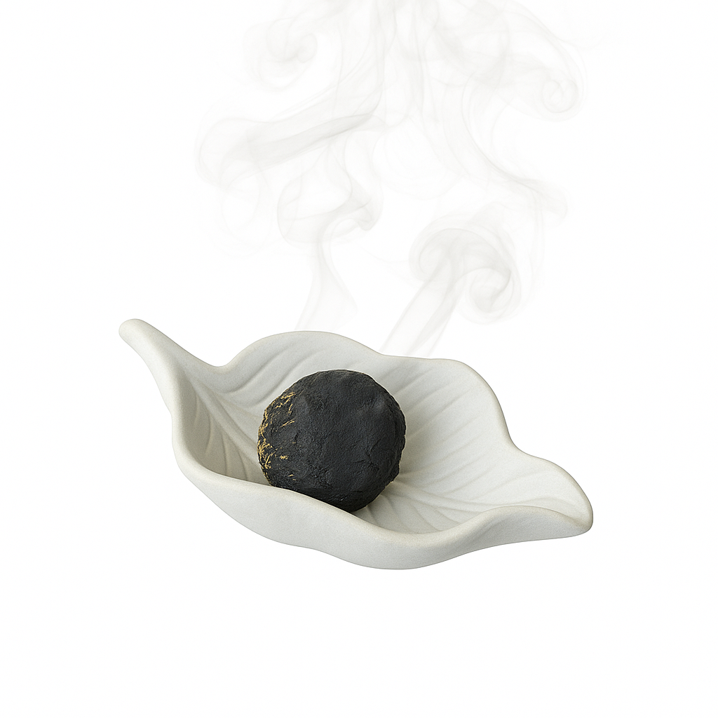 Coloque o defumador sobre uma superfície estável e resistente ao calor. Acenda sua bombinha ou erva e permita que a fumaça envolva o ambiente, promovendo purificação, equilíbrio e boas vibrações.
