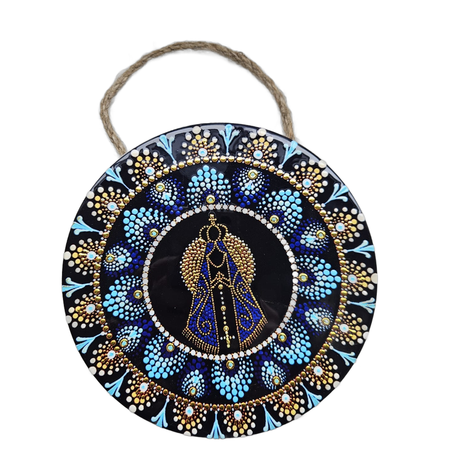 O preto, além de sua elegância, simboliza força e introspecção, tornando essa peça ideal para ambientes de oração, meditação ou decoração. A mandala, por sua vez, representa equilíbrio e harmonia, ajudando a purificar o espaço e fortalecer a conexão espiritual. Seu design refinado e atemporal combina com diversos estilos de decoração, proporcionando um toque de fé e beleza ao ambiente.