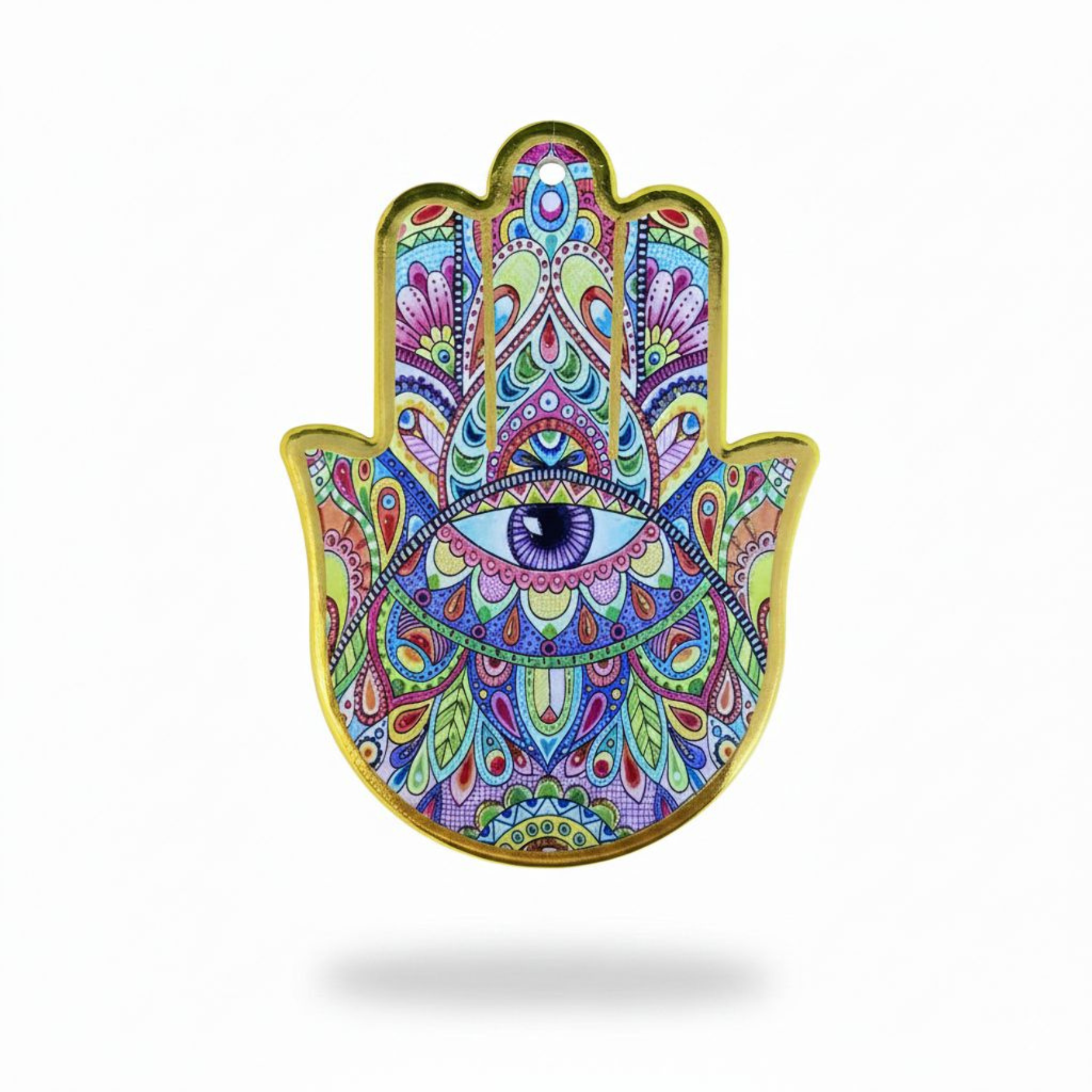 Este enfeite de parede Mão de Hansa (também conhecido como Mão de Fátima) é um poderoso amuleto milenar, projetado para atrair proteção, felicidade e boa sorte para o lar. Com um design rico em detalhes geométricos e cores vibrantes que envolvem o emblemático "Olho Grego" central, esta peça serve para afastar energias negativas e o mau-olhado, atuando como um escudo espiritual em qualquer ambiente. Além de seu profundo significado místico, o enfeite é um item decorativo sofisticado que traz um toque de espiritualidade e elegância a salas, entradas ou escritórios, simbolizando força e bênçãos para quem habita o espaço.