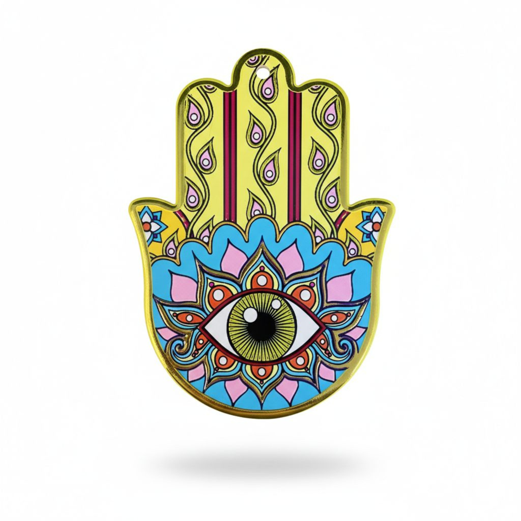 Este enfeite de parede Mão de Hansa (também conhecido como Mão de Fátima) é um poderoso amuleto milenar, projetado para atrair proteção, felicidade e boa sorte para o lar. Com um design rico em detalhes geométricos e cores vibrantes que envolvem o emblemático "Olho Grego" central, esta peça serve para afastar energias negativas e o mau-olhado, atuando como um escudo espiritual em qualquer ambiente. Além de seu profundo significado místico, o enfeite é um item decorativo sofisticado que traz um toque de espiritualidade e elegância a salas, entradas ou escritórios, simbolizando força e bênçãos para quem habita o espaço.