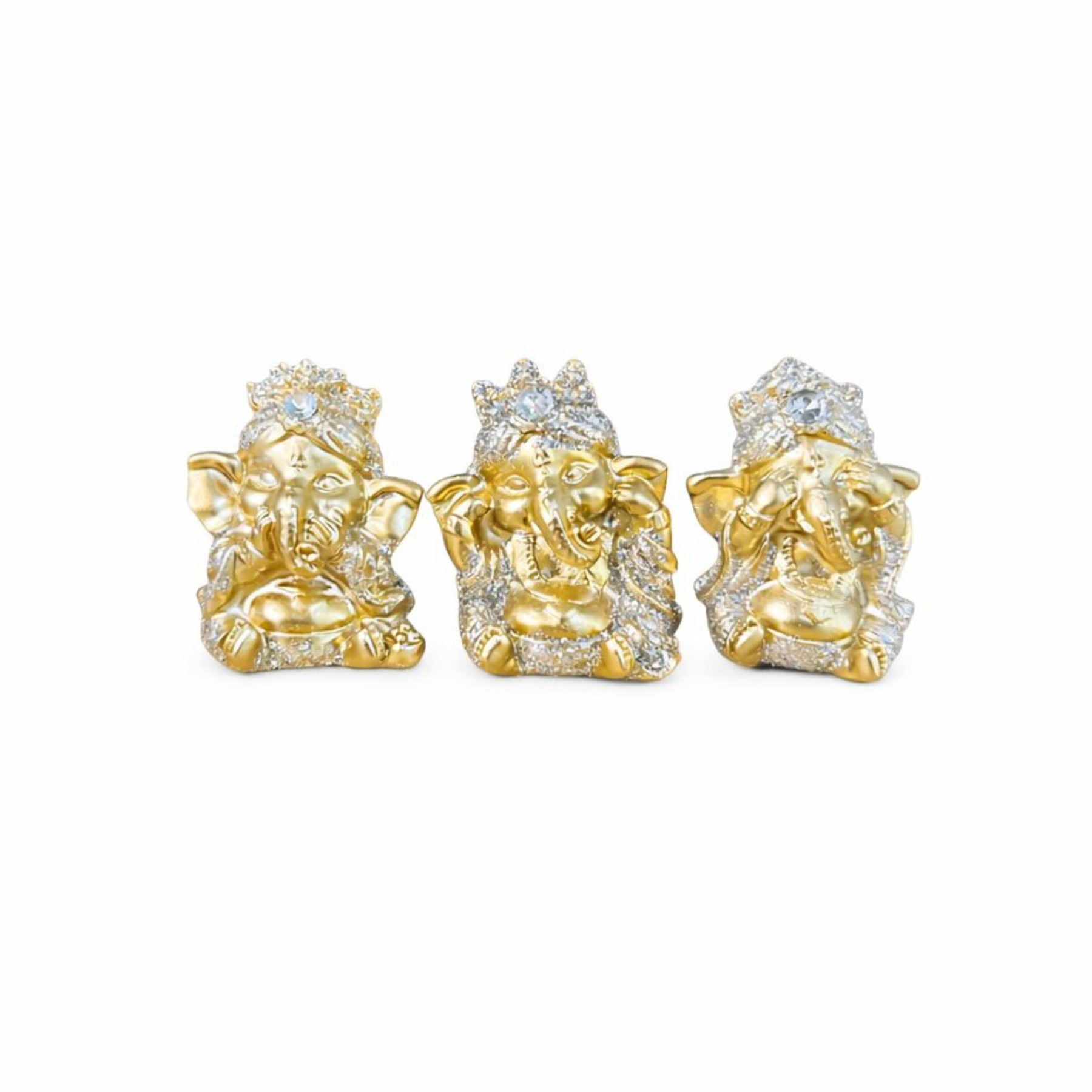 PRODUTO: Enfeite Resina Trio Mini Ganesha Com Brilho 5cm