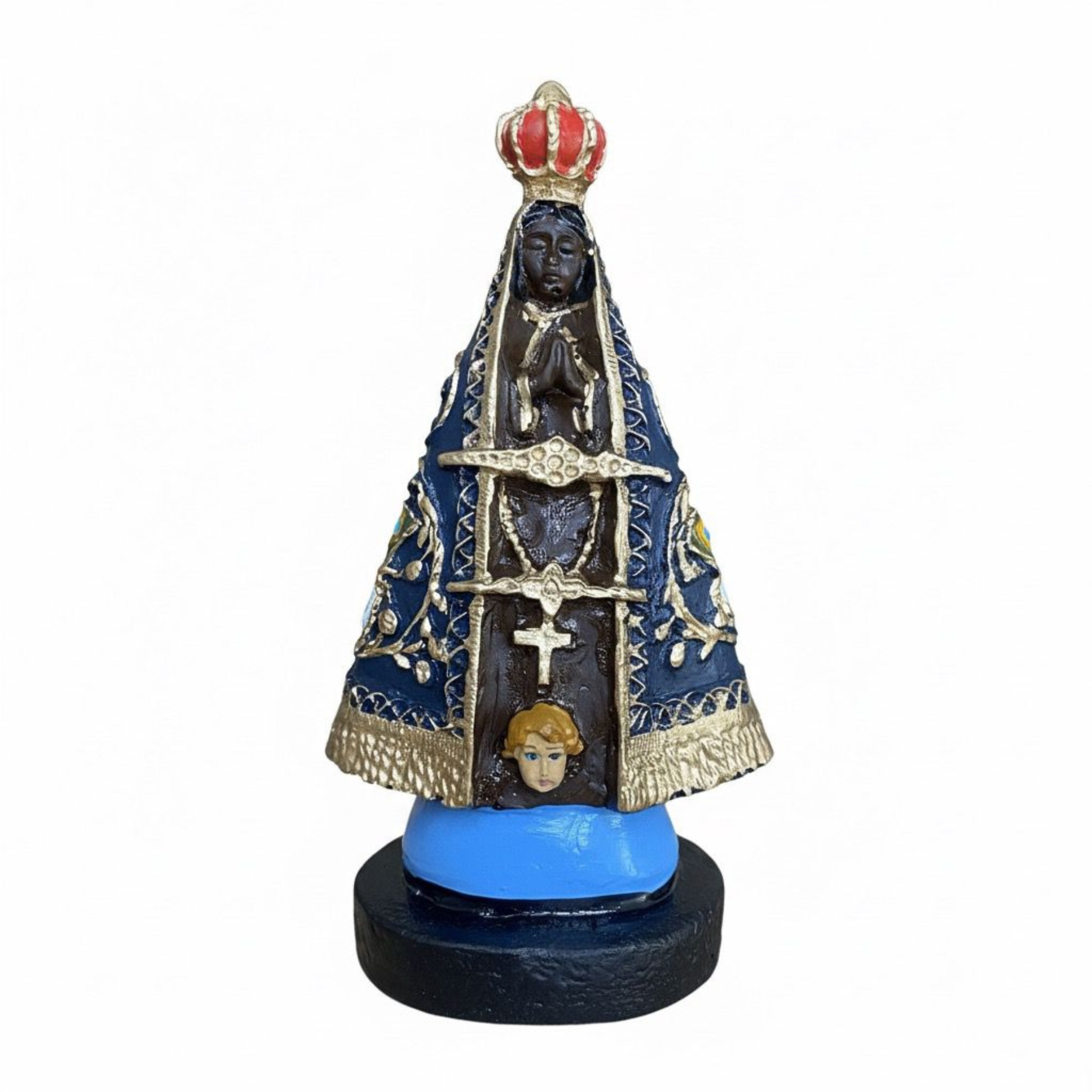 Com tamanho compacto, é perfeita para altares, oratórios, ambientes religiosos ou como um presente especial para quem cultiva devoção à Nossa Senhora Aparecida. Sua presença torna qualquer espaço mais acolhedor e abençoado, inspirando momentos de oração e reflexão.