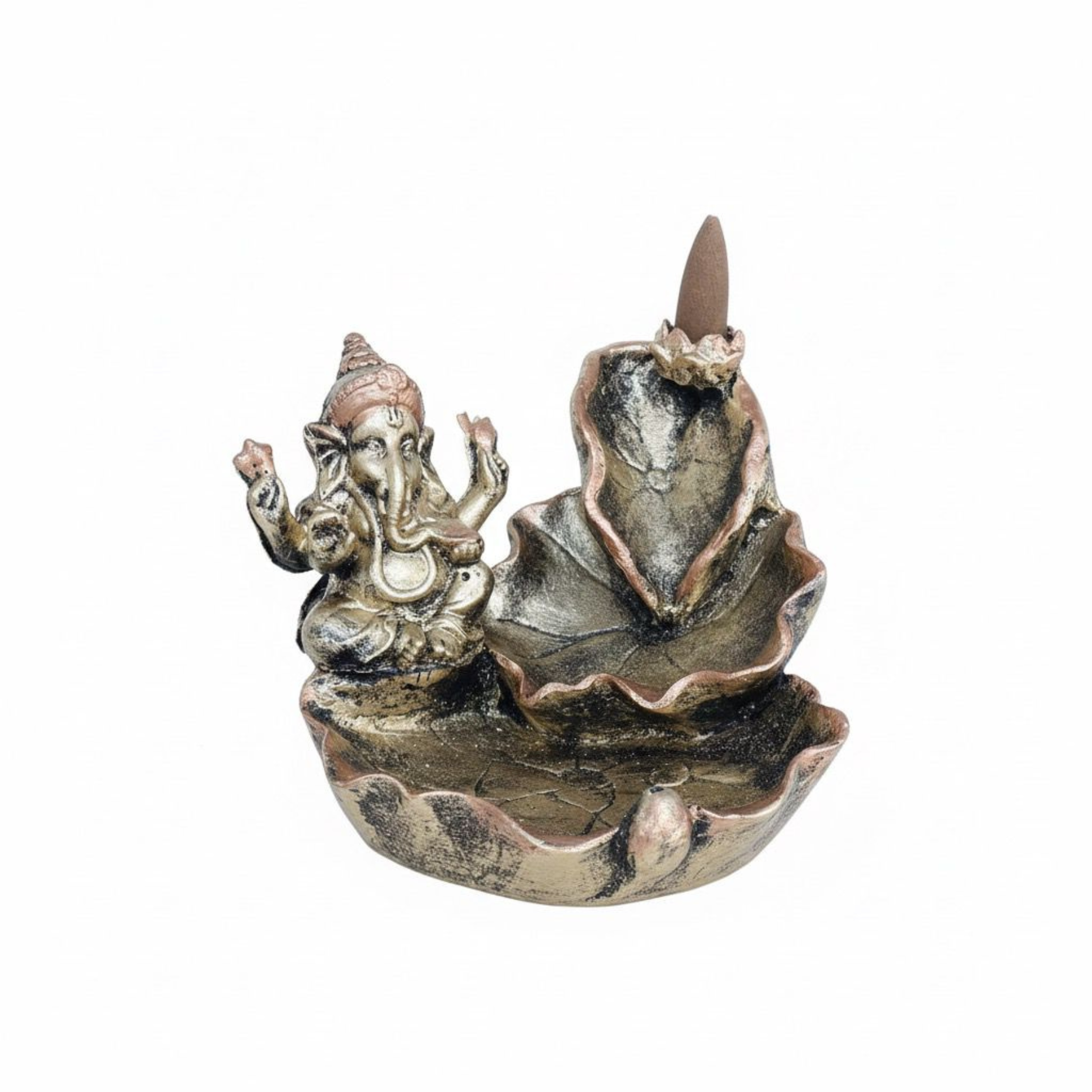Incensário Cascata Ganesha Meditando Flor Vertical com 2 Quedas