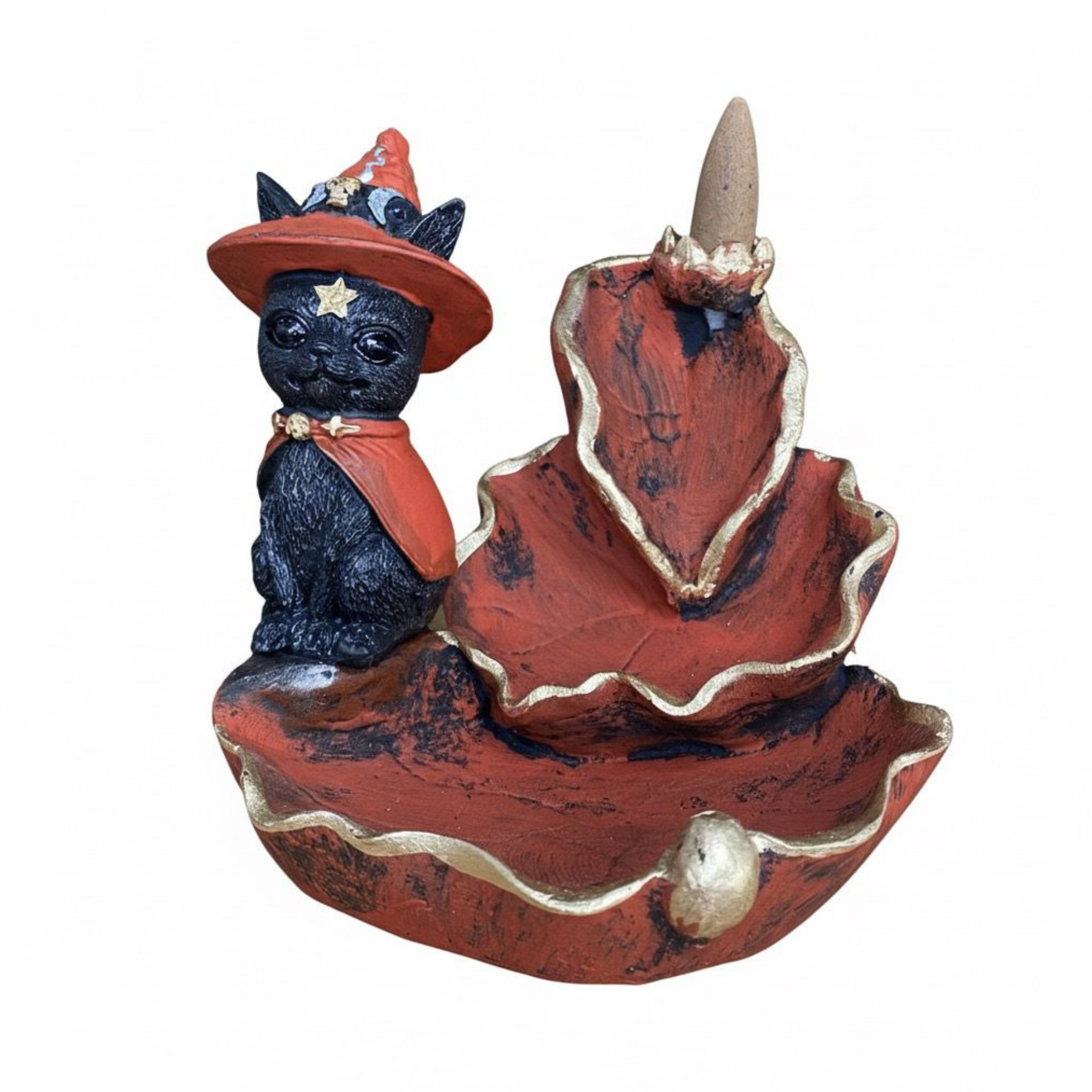 O Incensário Cascata Gato é projetado para criar um efeito visual impressionante. Quando o incenso em cone é aceso, a fumaça desce suavemente, criando uma cascata mágica. Esta peça é perfeita para quem aprecia a estética esotérica e deseja adicionar um toque de magia ao seu espaço.