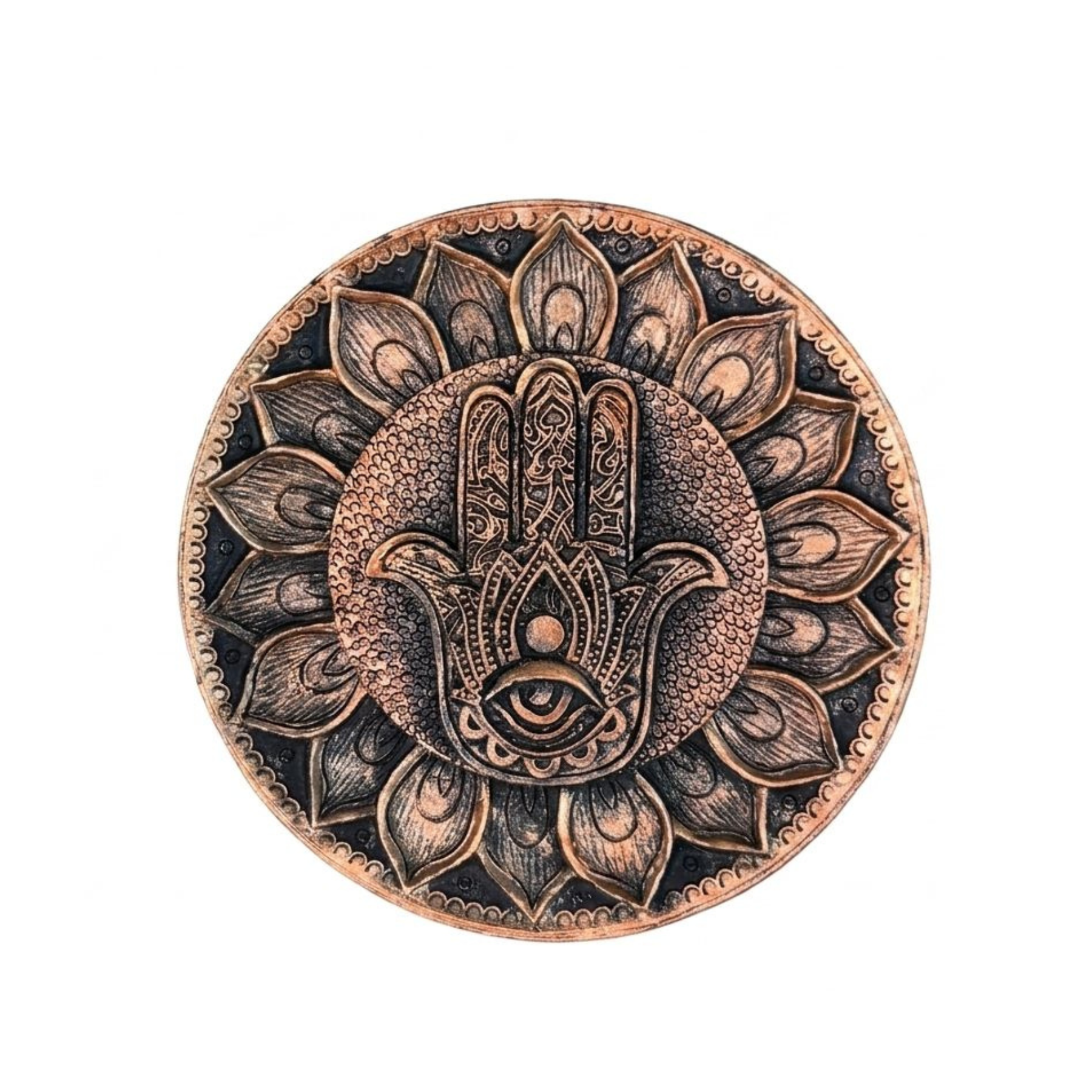 PRODUTO: Incensário Mão Hamsa Redondo em Resina - Rose