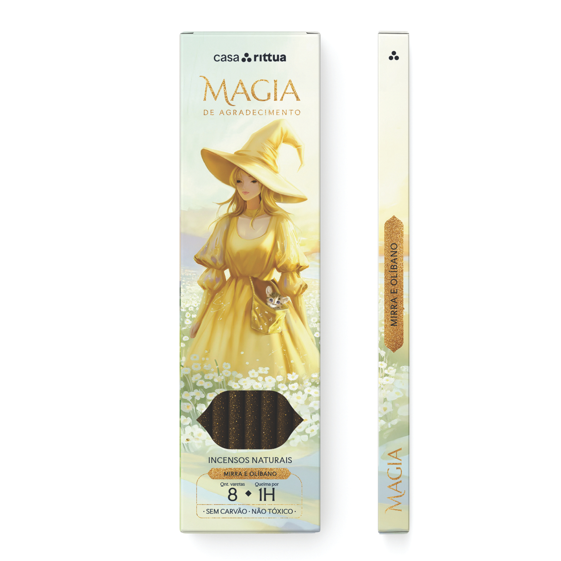 Este incenso natural da linha Magia de Agradecimento, desenvolvido pela Casa Rittua, apresenta a combinação aromática de Mirra e Olíbano. Ele é formulado para auxiliar na expressão da gratidão e na elevação espiritual, utilizando a mirra para purificar e consagrar o ambiente, enquanto o olíbano favorece a conexão com o sagrado e a paz interior. O produto contém 8 varetas com tempo de queima de aproximadamente 1 hora cada, sendo livre de carvão e não tóxico, o que o torna ideal para encerrar ciclos com harmonia, realizar orações ou simplesmente cultivar um estado mental de reconhecimento e plenitude.