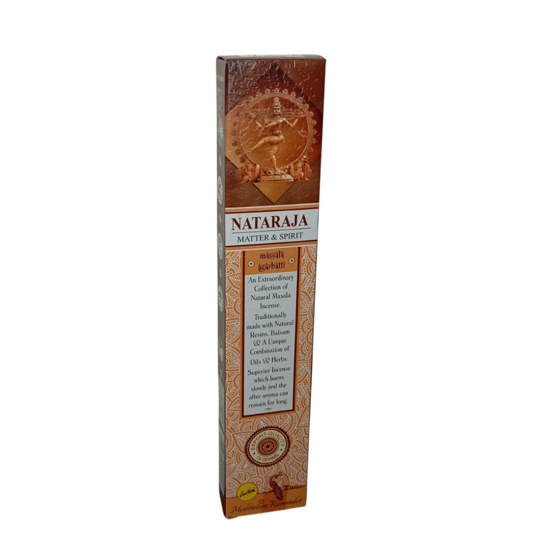 O incenso Sree Vani Meditation Reminder - Nataraja é uma homenagem simbólica ao aspecto dançante do deus Shiva, representando a criação, destruição e transformação do universo. A figura de Nataraja, conhecida como o Senhor da Dança Cósmica, inspira este incenso que é especialmente formulado para práticas meditativas, rituais espirituais e momentos de introspecção profunda.