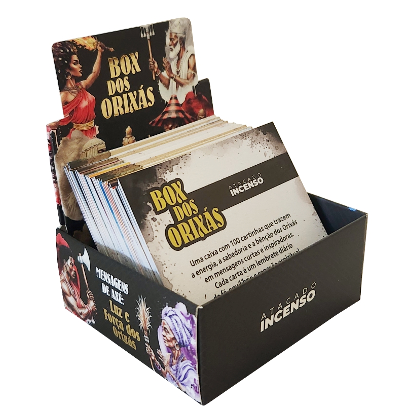 Este Box de Mensagens Orixá traz 100 Cartões contendo inspirações profundas e conselhos baseados nos Orixás. Uma dose diária de força, sabedoria e axé para guiar seus caminhos e trazer luz e coragem para o seu dia a dia.