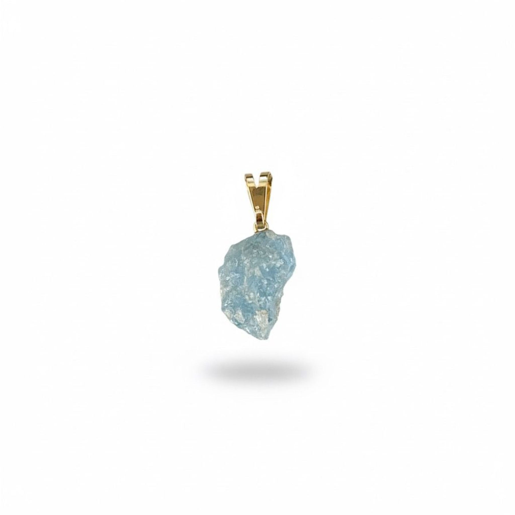 Pingente Água Marinha Pedra Bruta - Coroa Dourada