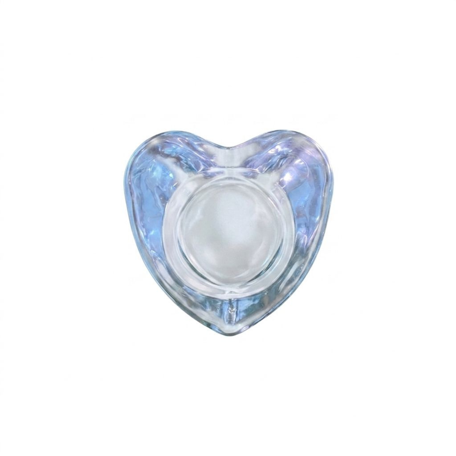 Este porta-vela em formato de coração é uma peça romântica e delicada, confeccionada em vidro translúcido com um sofisticado acabamento furta-cor que reflete tons azulados e perolados. Seu design conta com bordas suaves e uma cavidade central circular ideal para velas pequenas, proporcionando um brilho suave que realça a decoração. Perfeito para criar um ambiente de acolhimento e afeto, este acessório é excelente para atrair energias de amor e harmonia para o lar, sendo uma escolha elegante para presentear ou decorar espaços que buscam um toque de leveza e serenidade.