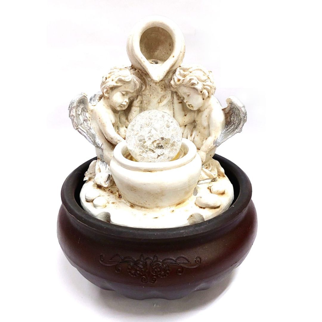 Imagine uma delicada fonte de água feita de resina branca, adornada com duas figuras angelicais segurando uma bola de vidro. Esta peça encantadora é não apenas uma adição estética ao seu espaço, mas também carrega um profundo simbolismo no contexto do feng shui. No feng shui, a água é um elemento de suma importância, pois representa a prosperidade e o fluxo constante de energia positiva. A presença de água corrente em ambientes internos ajuda a purificar e revitalizar a energia (chi), criando um ambiente harmonioso e equilibrado. Os anjos, com suas formas graciosas e tranquilas, trazem uma sensação de proteção, paz e serenidade. Sua cor branca simboliza pureza e clareza, elementos essenciais para atrair boas energias.