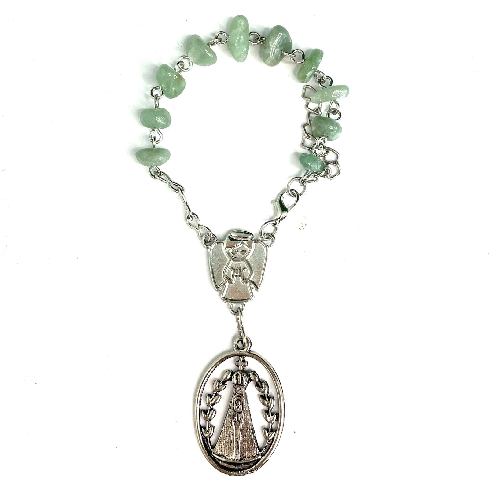 PRODUTO: Mini Terço em Pedra Natural - Quartzo Verde