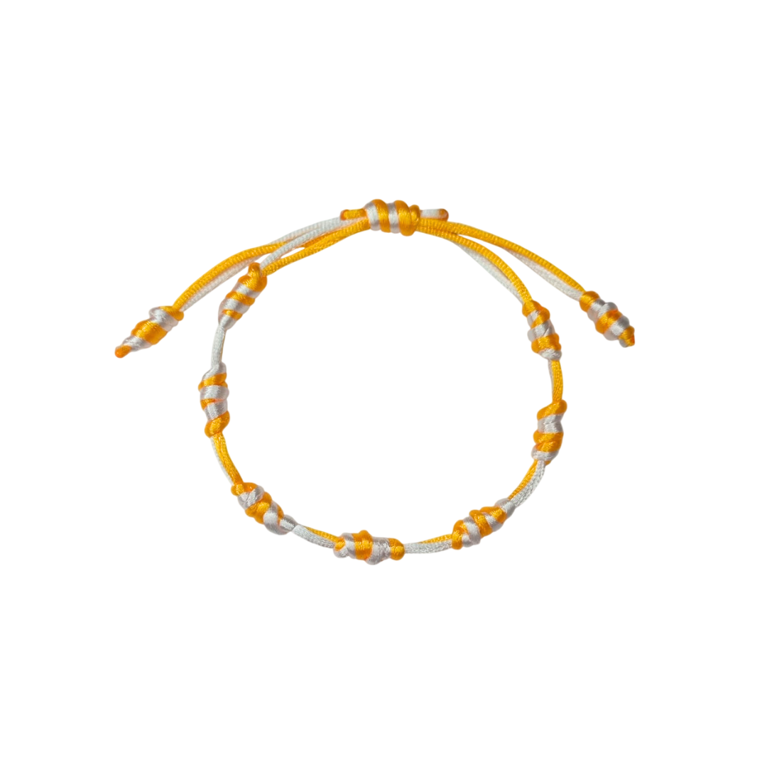 A Pulseira 7 Nós - Oxum é um amuleto de proteção espiritual que honra a força doce e poderosa da orixá Oxum, senhora das águas doces, do amor, da fertilidade e da prosperidade. Confeccionada artesanalmente com fio de seda ou barbante acetinado, essa pulseira carrega sete nós que representam dimensões energéticas de proteção, equilíbrio emocional e conexão com o sagrado feminino.